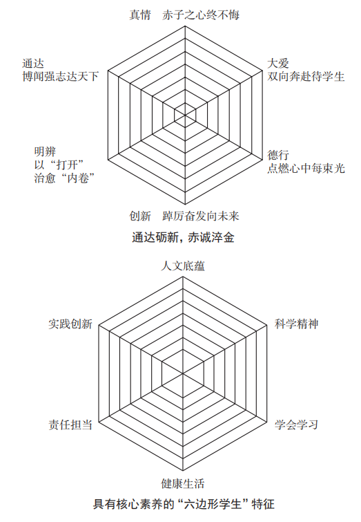 五、明辨:以“打开”治愈“内卷” 在培育和发展家校共育关系的过程中,公心、公平、公正、公议是教师的首要准则,同时,明辨和定力对于教师而言也是非常重要的。 回到“六边形”这一话题,我们可以观察到,六边形既不像正方形、三角形那样尖锐,又不像圆形那样圆滑,这并非巧合,而是象征着一名“六边形教师”既讲原则,又有待人接物之方法,能协同处理、和睦关系。 作为一名有幸始终获得家长信赖和尊重的教师,我的特点首先是一个“真”字。教育家陶行知先生说过:“千教万教教人求真,千学万学学做真人。”大道至简,唯真不破。一个“真”字为我赢得了与家长的坦诚相待,也赢得了家长们对学校和班级的无私支持。 近年来,我数次发现学生和家长一知半解地套用所谓的网络热词,如“霸凌”“PUA”“冷暴力”等,来评价一些被歪曲和放大的行为和现象。对于这种苗头,我首先是不激化矛盾、不偏听偏信,第一时间面向全班公开、讲课。公正、公平地开展调查,在全班同学面前还原事实真相。同时,我会坚决遏止这种趋势对家校共同体和班级共同体建设的负面影响,将“第一扇破窗”迅速修复,极力遏制社会尤其是网络负能量对班级环境的污染。 我理解家长的焦虑,但绝不助长这种情绪的蔓延、渗透,相反,在鲜明、坚决地遏止其负面影响的同时,我提倡用“打开”的方式来治疗“内卷”,即互相打开心门,坦诚交流,在沟通中调适家长的焦虑情绪,从而让他们卸下防备、消除敌意,使家校能充分协同,合力推动学生的健康成长。 于漪老师说:“教育不是结果,而是生命展开的过程。”在很多次谈心中,家长都会被我的真诚和启发打动,甚至落泪。个别气势汹汹来“告状”的家长最后带着自责离开,决定要走出“内卷”的零和博弈,打开自我,“展开生命”,成为真正能呵护学生心灵健康成长的精神后盾。