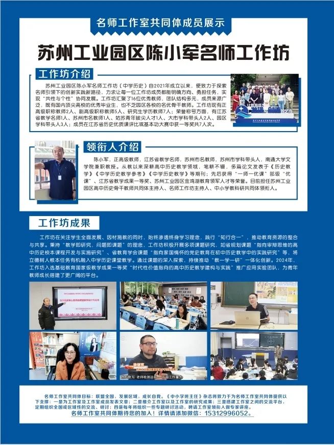 本期封面人物:王增运 陕西省西安市第四十四中学,正高级教师,陕西省特级教师, 陕西省特支计划教学领军人才,陕西省王增运名师工作室主持人,陕西省学科带头人,陕西省教学能手。 ![]() 封二:苏州工业园区陈小军名师工作坊 ![]() 封底:西安市第四十四中学